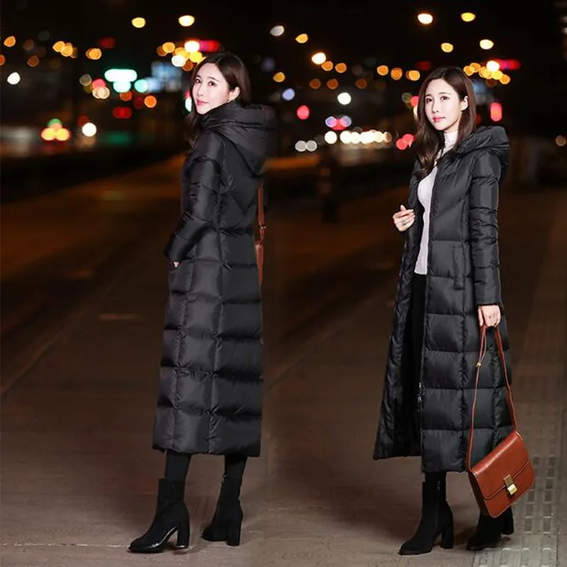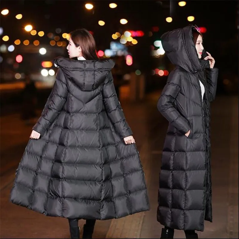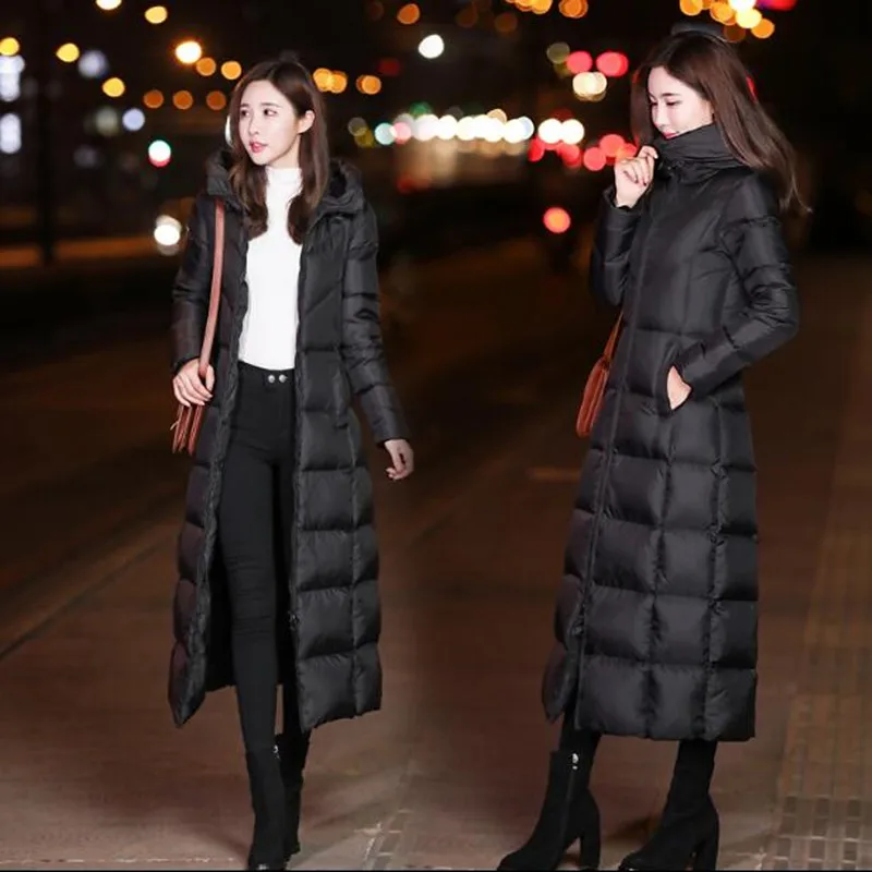 Best Price 2019 New large size women down jacket Hooded long thick winter coat over the knee Outwear casual wa