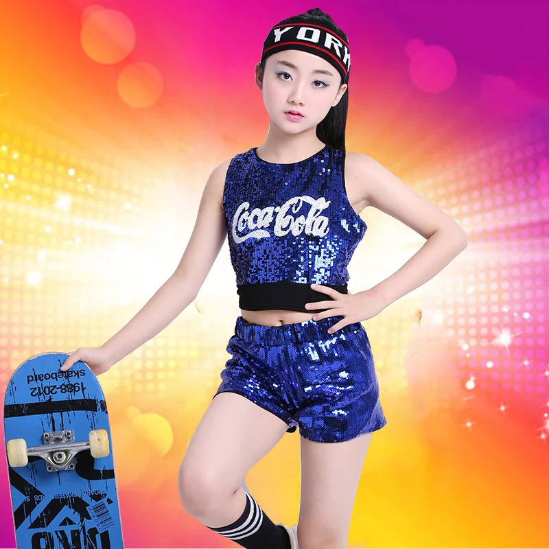Hot Discount Sequin Suit Kid Jazz Dance Costumes Vest Suit For Girls Stage Clothing Hip-Hop Bar Dj Stage Perform