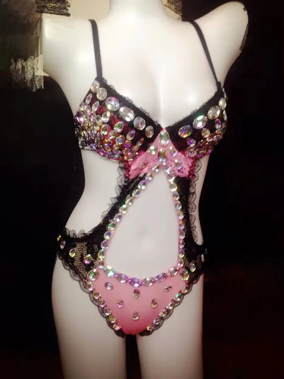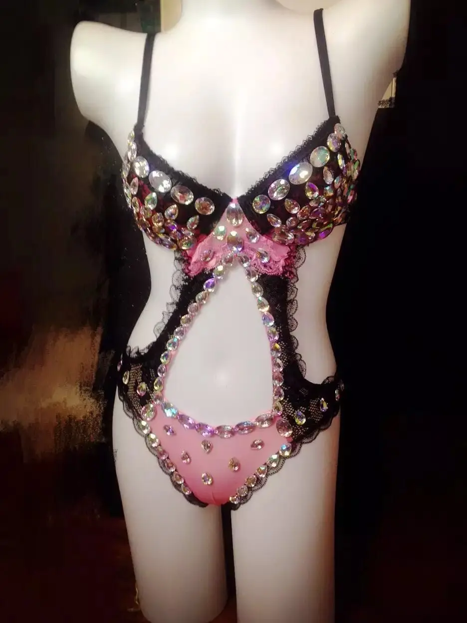 Hot Sale Women Pole Dance Performance Clothing Sexy Backless Crystals Bikini Nightclub Bar Party DJ DS Stage